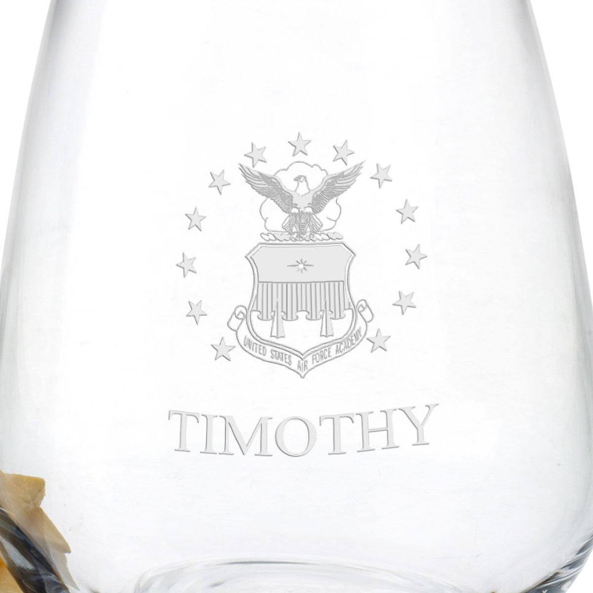 Contemporary US Air Force Academy stemless wine glasses bring an elegant touch to your table or bar. The Air Force Academy Logo is deep-etched on each glass.