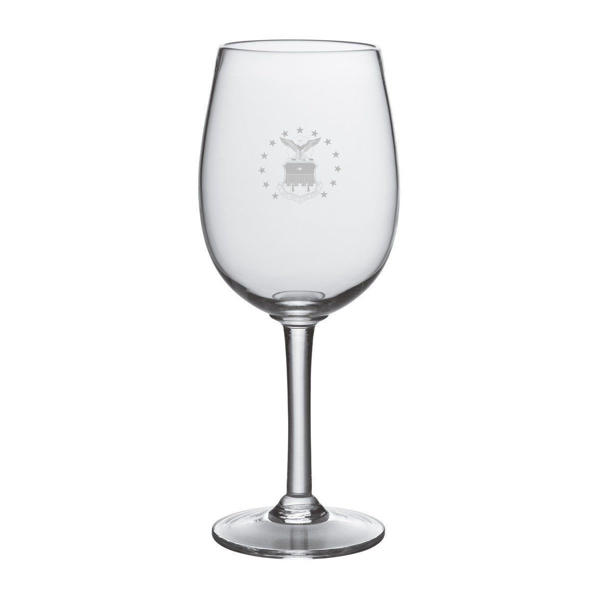 The US Air Force Academy Red Wine Glass is crafted to enhance the rich flavors of your favorite wines. The Air Force Academy Logo is beautifully etched onto the hand-blown glass, adding a touch of USAFA pride to every pour. With its wide bowl and elegant stem, this glass is designed to bring out the full bouquet of any red wine, making it perfect for both intimate dinners and grand celebrations.