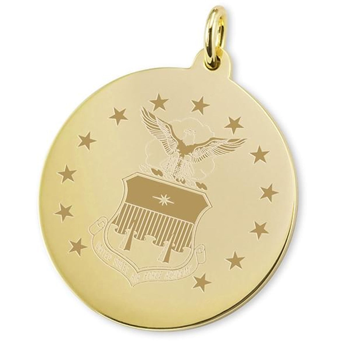 U.S. Air Force Academy 18-karat charm features USAFA insignia on front.