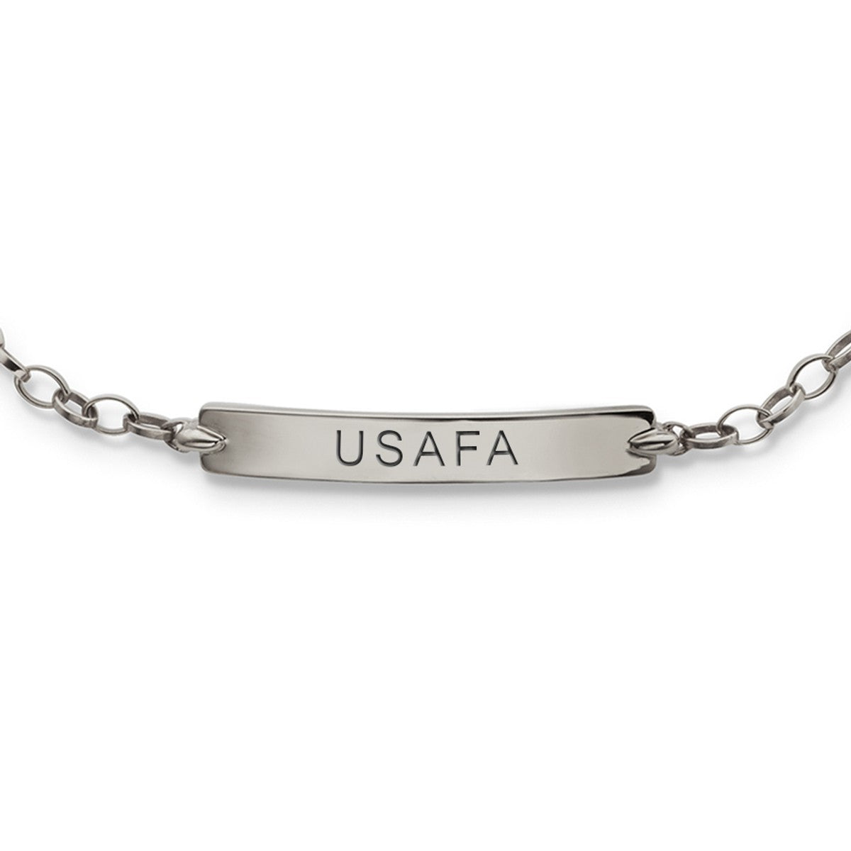 A feminine, delicate bracelet in sterling silver as appropriate for evening wear as day. "USAFA" engraved on slim banner accentuates the elegance.