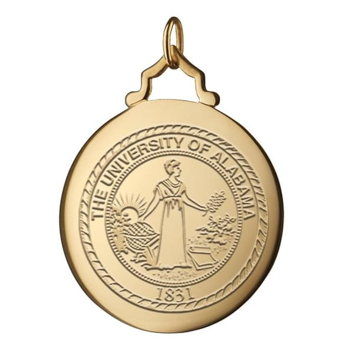 Let her sparkle with this important necklace. Beautifully set diamond highlights the 18K gold pendant. Black steel necklace adds a modern touch. Alabama seal engraved on back.