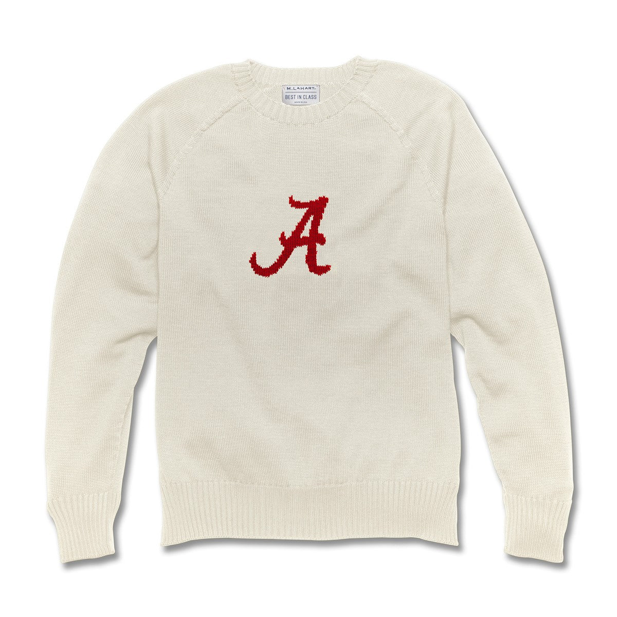 Custom-made in the USA exclusively for M.LaHart, our University of Alabama letter sweater is styled and produced in the most modern and luxurious way possible. 3D knitting creates virtually zero waste and the highest quality knitwear on the global market