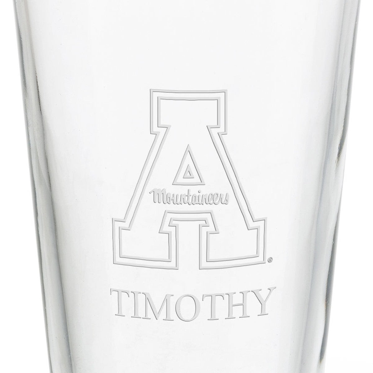 Each Appalachian State 16 oz pint glass is deep-etched with the Appalachian State University logo. Its simple styling and crystal-clear clarity make this glass perfect for any drink. Your name can be added under the logo for free.