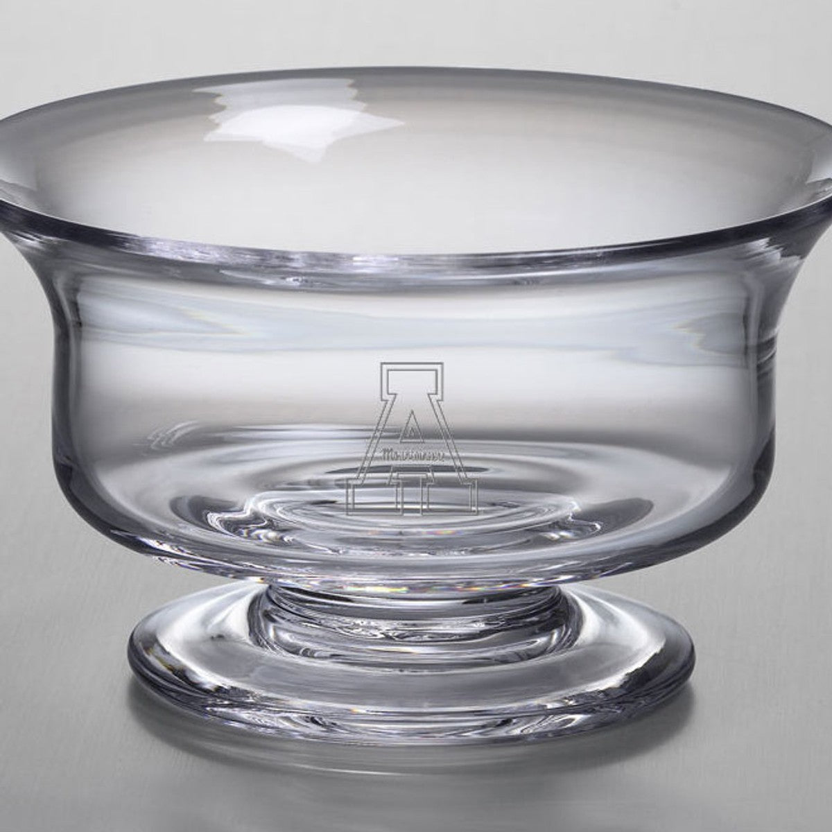 The Appalachian State University Glass Presentation Bowl, with the Appalachian State Logo beautifully etched into the hand-crafted glass is a great gift. The traditional style of the bowl complements any Appalachian State University home.