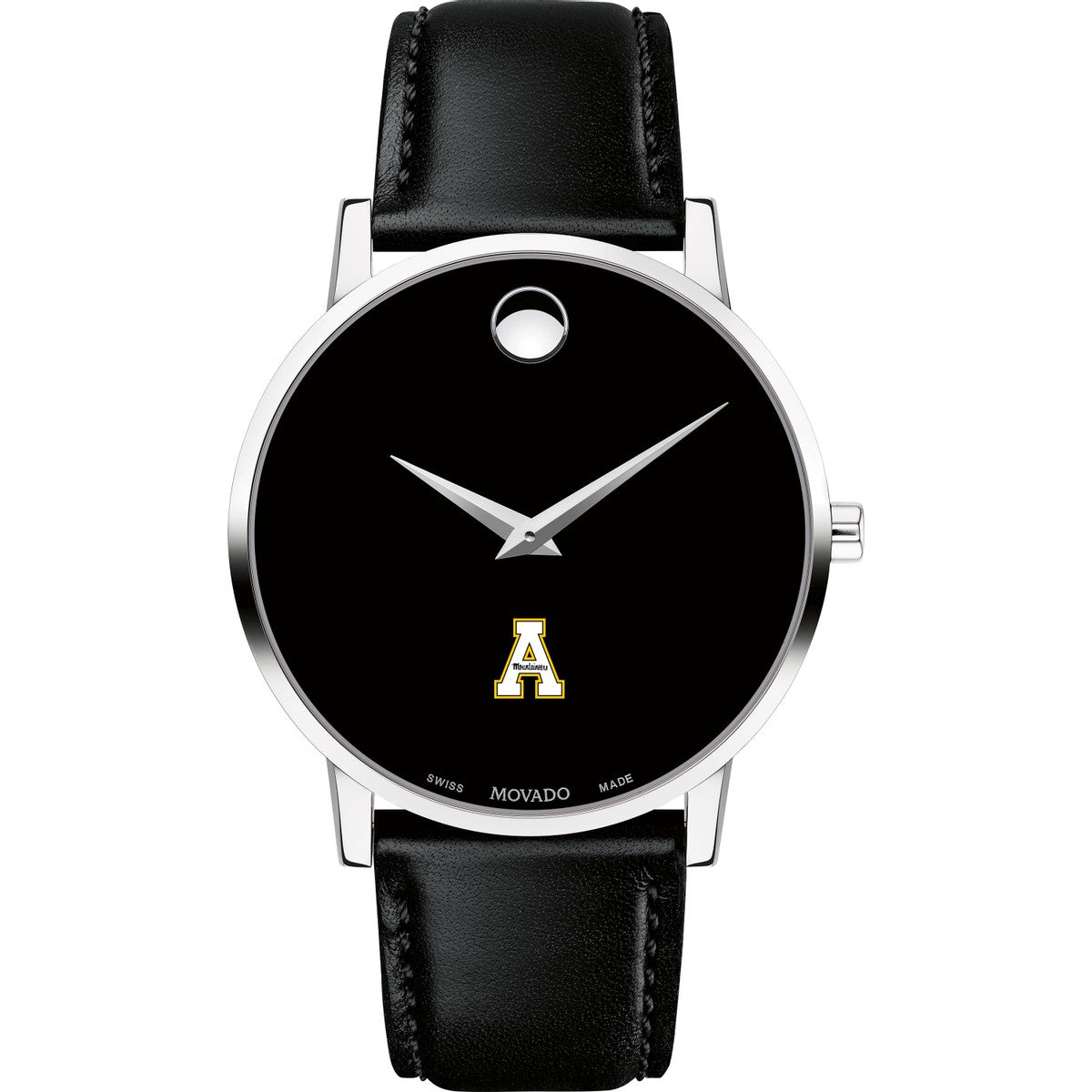 Appalachian State University Men's Movado Museum watch features the Appalachian State Logo in full color at 6 o'clock on black dial. Created in 1947, the iconic concave dot symbolizes the sun at high-noon. Complimentary personal engraving.