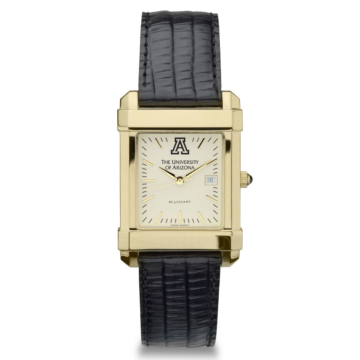 University of Arizona men's gold watch featuring the Arizona logo on cream dial. Free Engraving on all watches.