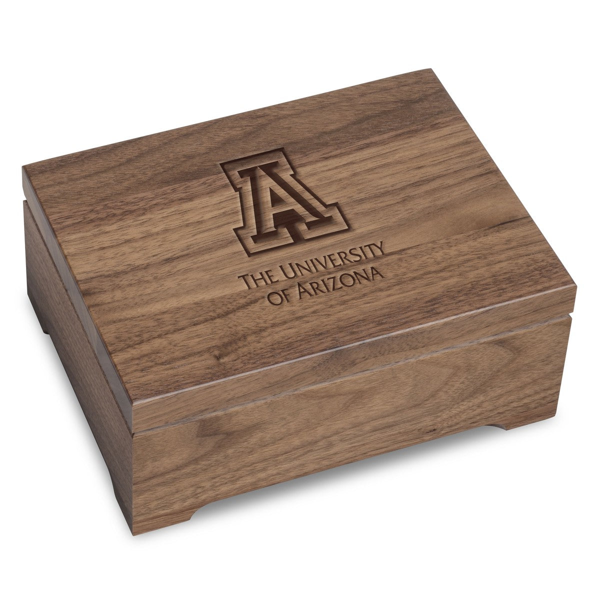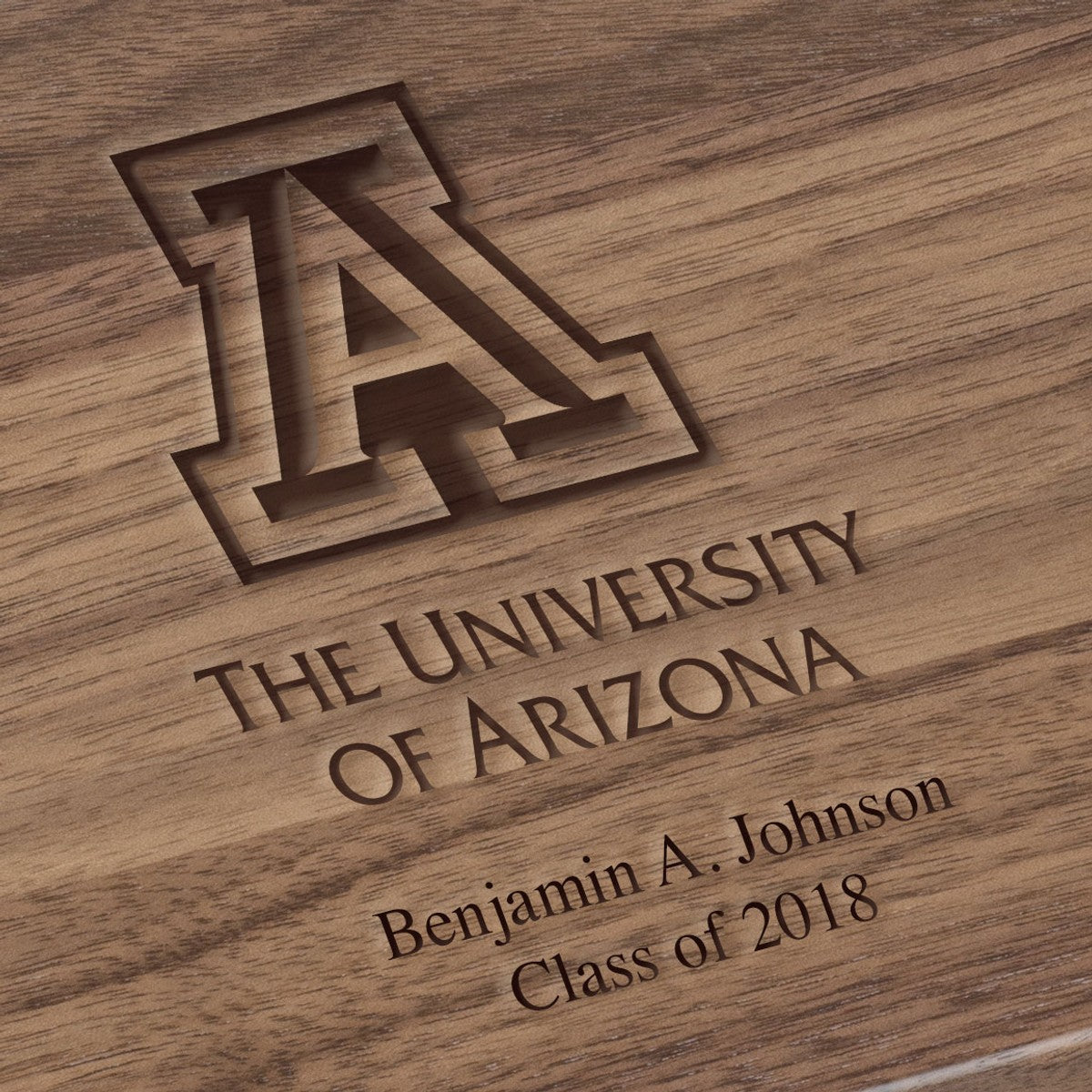 Our beautiful solid walnut desk box is made from hand-selected domestic walnut and crafted in the USA. Each box is hand finished with care, and proudly displays the Arizona logo on the lid.