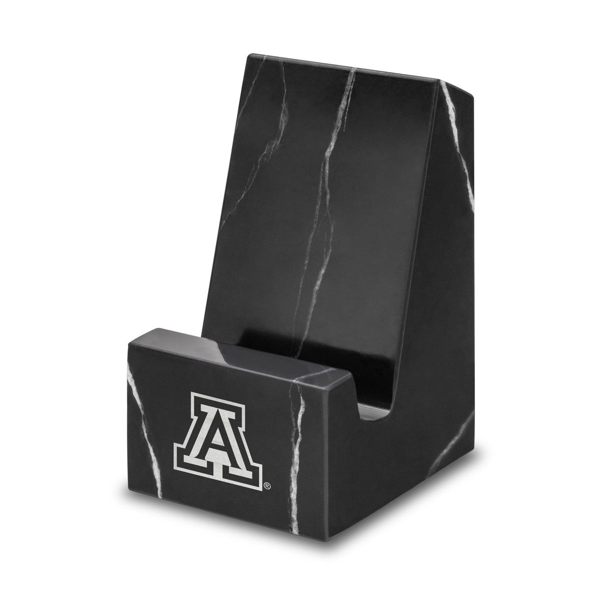 The perfect companion to our marble card holder, the officially licensed University of Arizona marble phone holder is an essential accessory for every Arizona fan's desk. The Arizona logo is elegantly featured on the front of this substantial, solid marble phone holder and accommodates most smartphones.