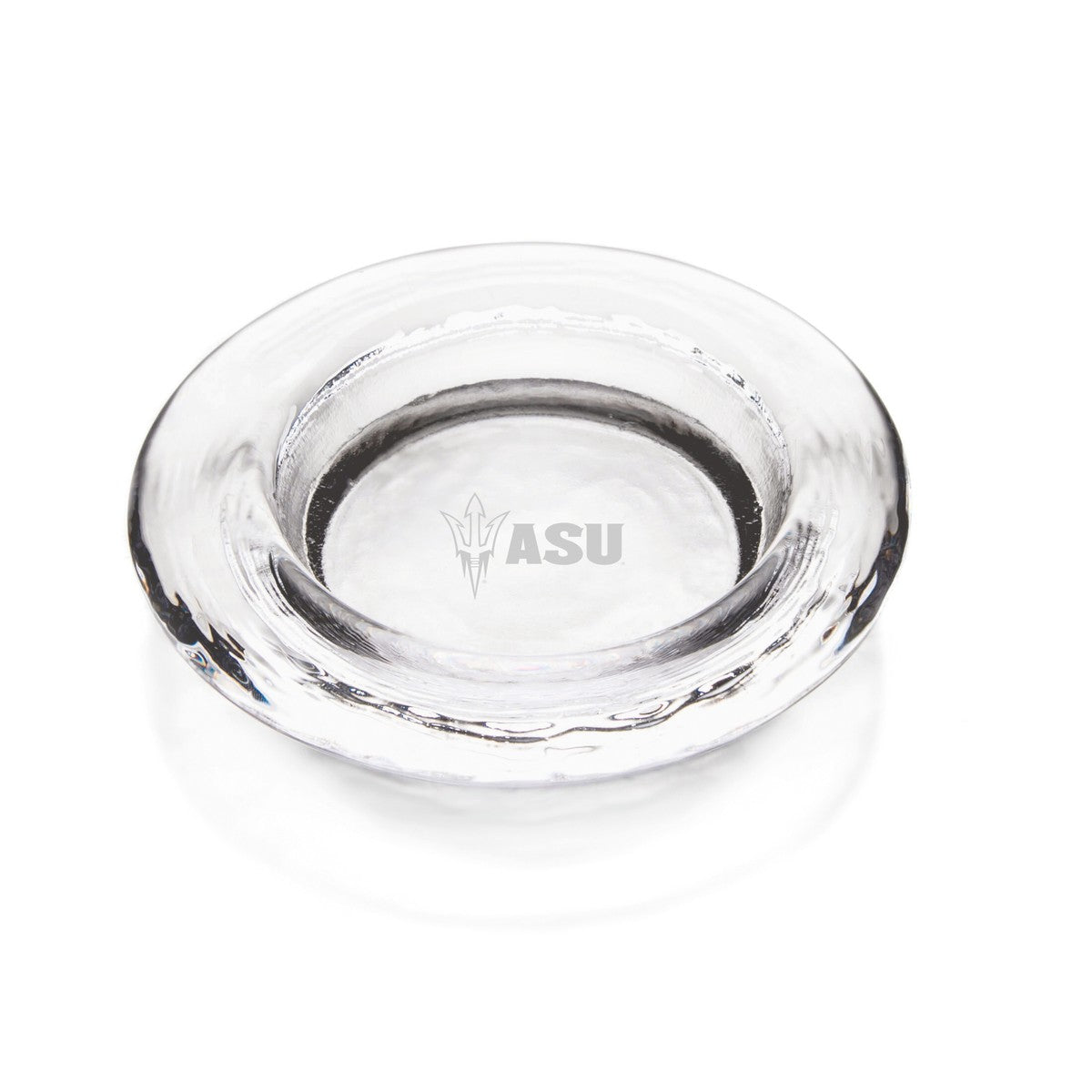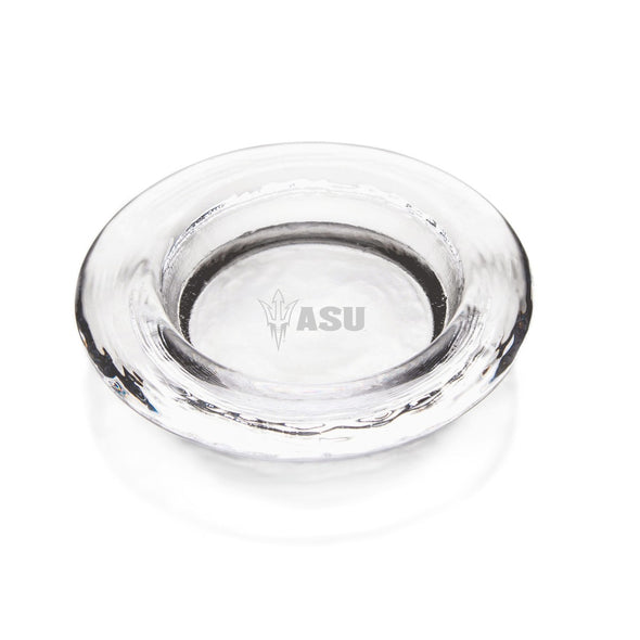 The Arizona State Glass Wine Coaster, with the ASU Logo distinctly etched on the base, is handcrafted with a thick, round lip and ample opening to accommodate different bottle sizes. Not only is the wine coaster an elegant feature to any table, it will also protect your furniture's finish.