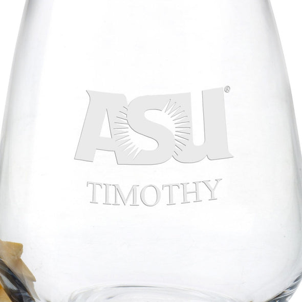 Contemporary Arizona State stemless wine glasses bring an elegant touch to your table or bar. The ASU Logo is deep-etched on each glass.
