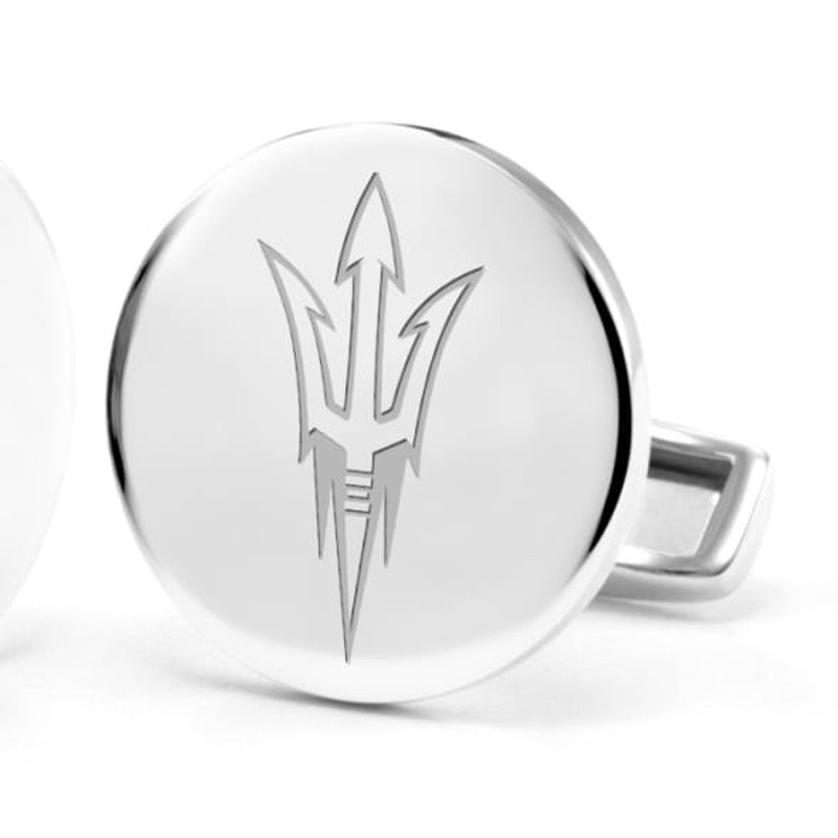Our Arizona State sterling silver cufflinks are a classic and enduring gift, featuring the ASU Logo finely detailed. Add engraving with graduation year or initials for a lasting commemorative.
