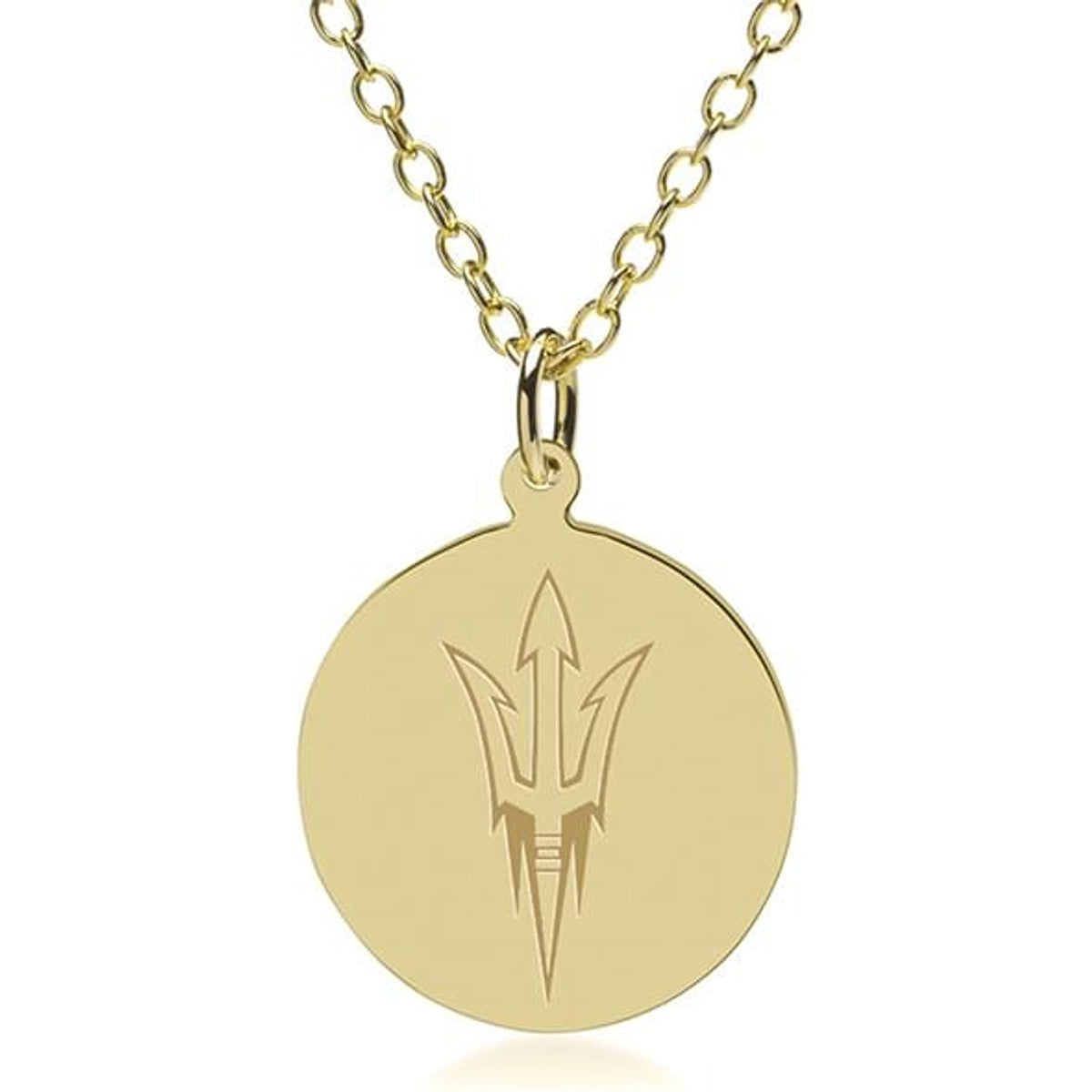 This solid 18-karat gold pendant and chain is an instant heirloom, featuring the ASU Logo beautifully engraved on the front with room for personalization on the back.