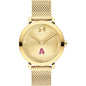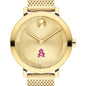 The Arizona State Women's BOLD Movado features the prestigious ASU Logo. Its pale gold Ionic-plated stainless steel mesh bracelet exudes contemporary elegance, making it a timeless accessory for the modern woman.