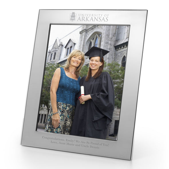 Handsomely engraved University of Arkansas pewter frame, generously accommodates your custom-engraved personal message.