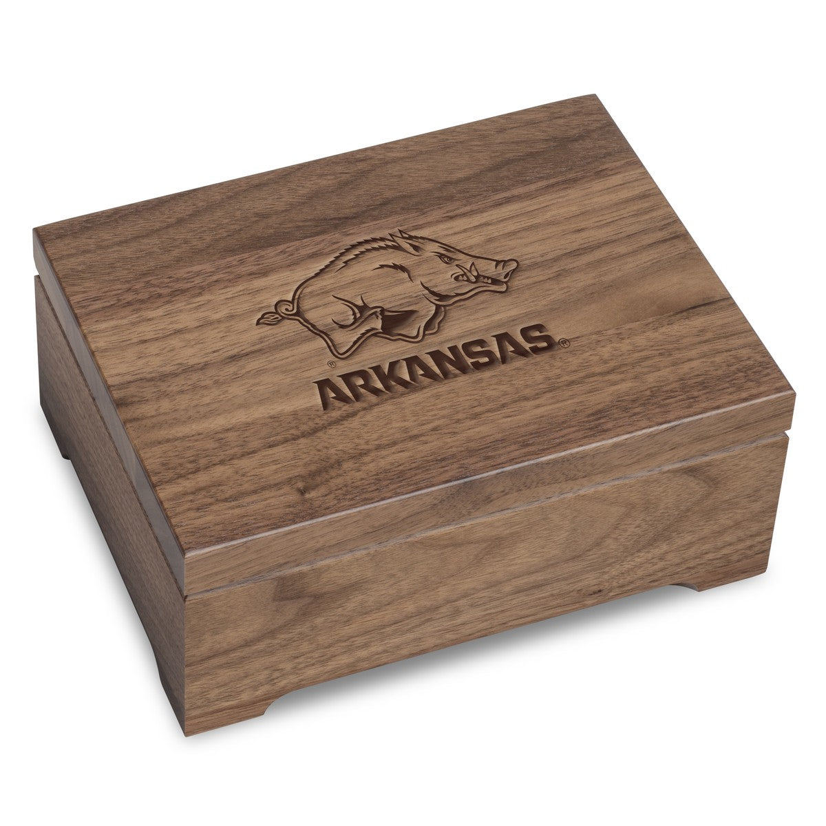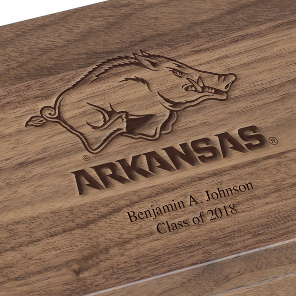 Our beautiful solid walnut desk box is made from hand-selected domestic walnut and crafted in the USA. Each box is hand finished with care, and proudly displays the Arkansas logo on the lid.