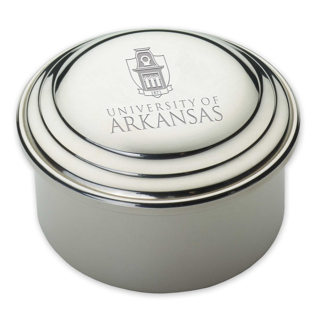 University of Arkansas pewter keepsake box is a beautiful space to store your treasures and features the Arkansas logo on its lid.