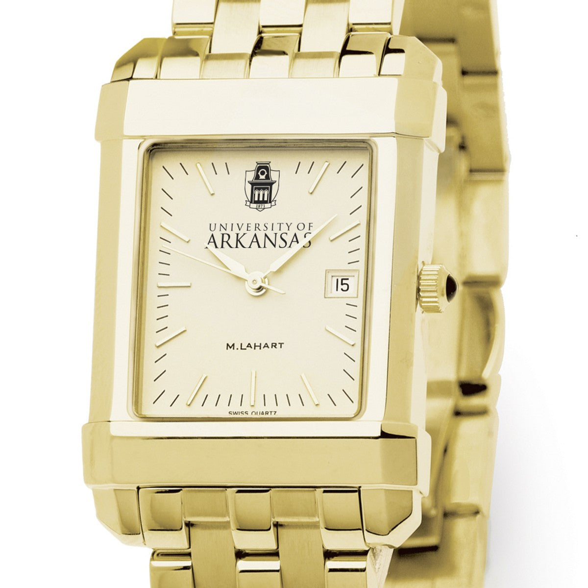 University of Arkansas men's gold watch featuring the Arkansas logo on cream dial. Free Engraving on all watches.