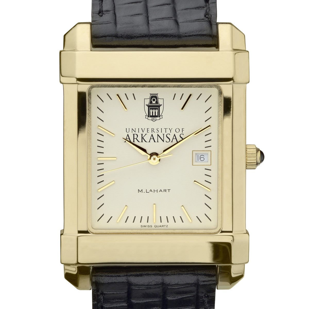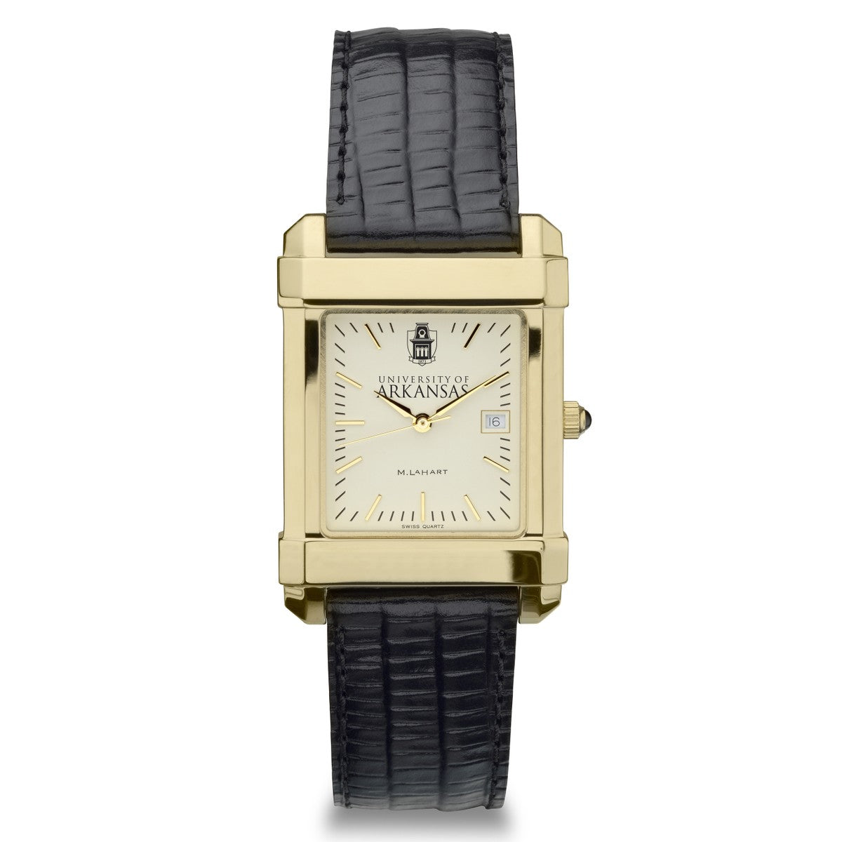 University of Arkansas men's gold watch featuring the Arkansas logo on cream dial. Free Engraving on all watches.
