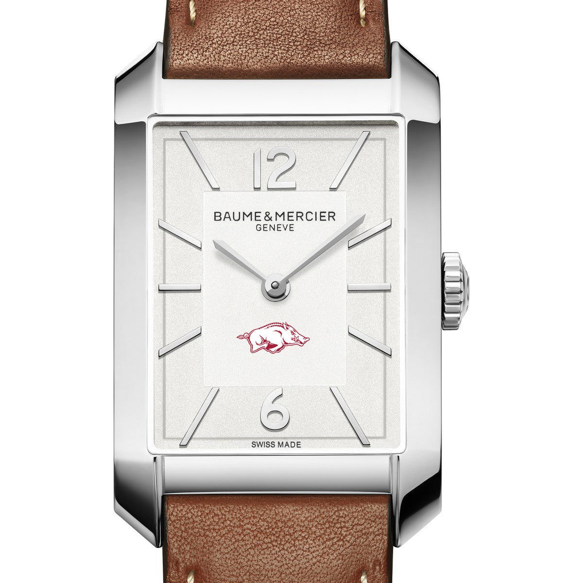 Understated yet distinctive, the Arkansas Men's Baume et Mercier Hampton Watch features a silver opaline dial with the Arkansas logo and a tan leather strap. A perfect blend of classic and contemporary design, this watch is a refined choice for any occasion. Complimentary personal engraving.