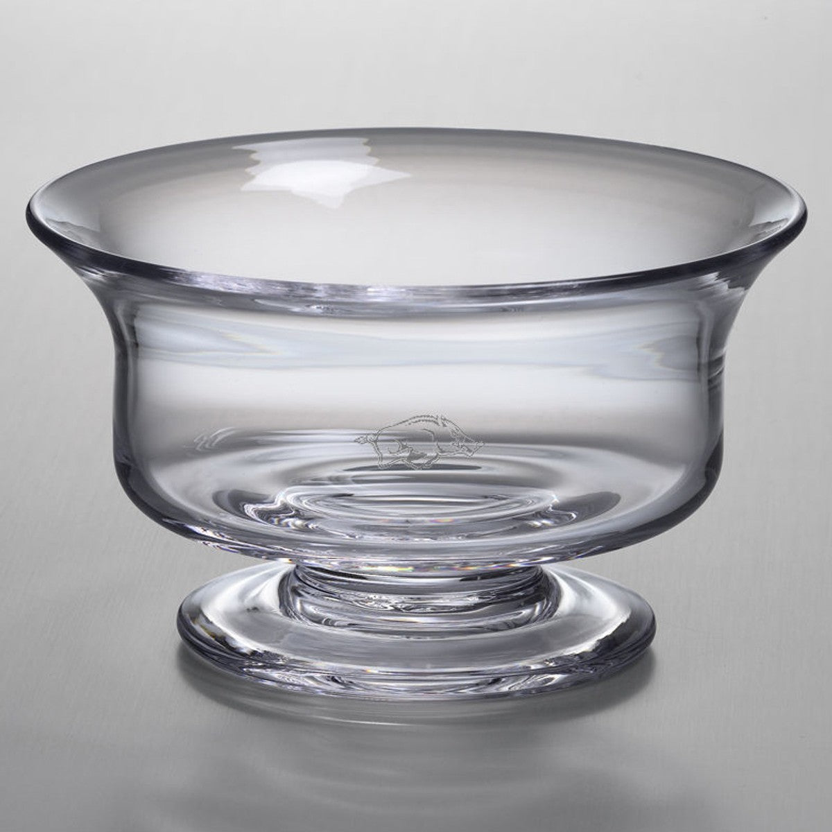 The University of Arkansas Glass Presentation Bowl, with the Arkansas logo beautifully etched into the hand-crafted glass is a great gift. The traditional style of the bowl complements any University of Arkansas home.