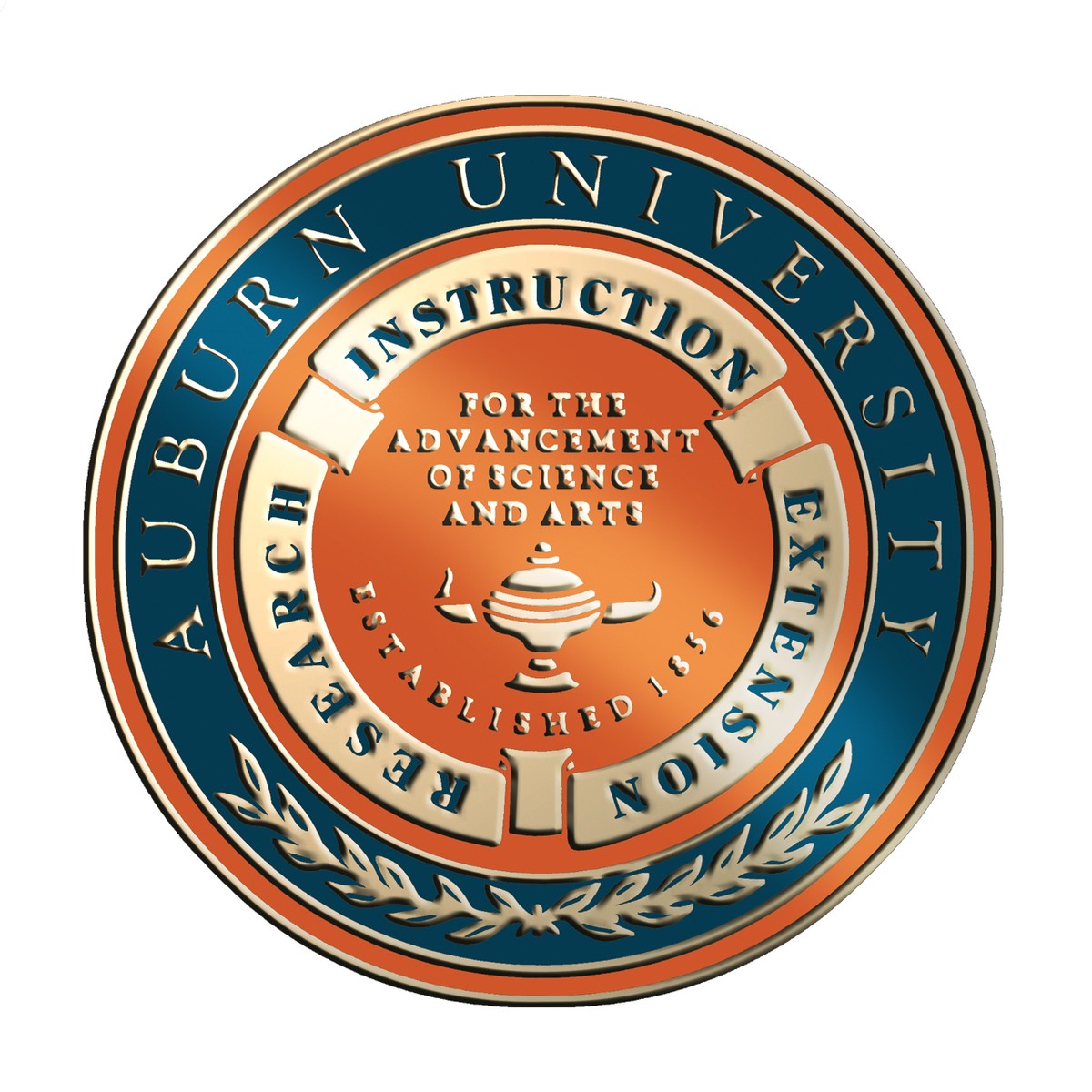 - Custom minted Auburn seal with hand painted enamel accents; inset into bevel-cut opening