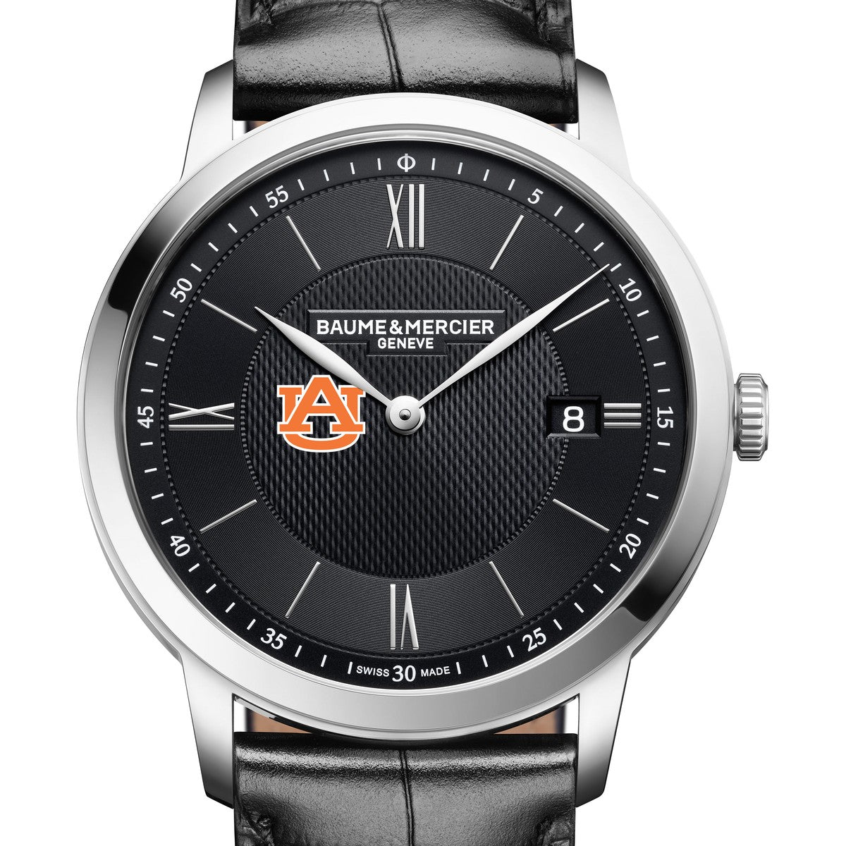 Bold and refined, the Auburn Men's Baume & Mercier 40mm Classima Watch features a deep black dial with the Auburn logo, polished steel hands, and a classic leather strap. Powered by a precision quartz movement, it’s a sleek statement of sophistication for those who value excellence and enduring style. Complimentary personal engraving.