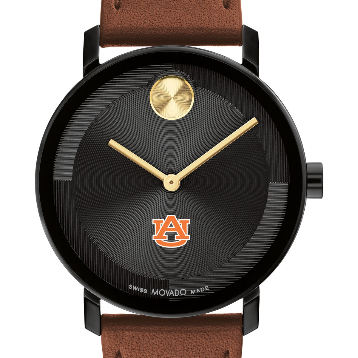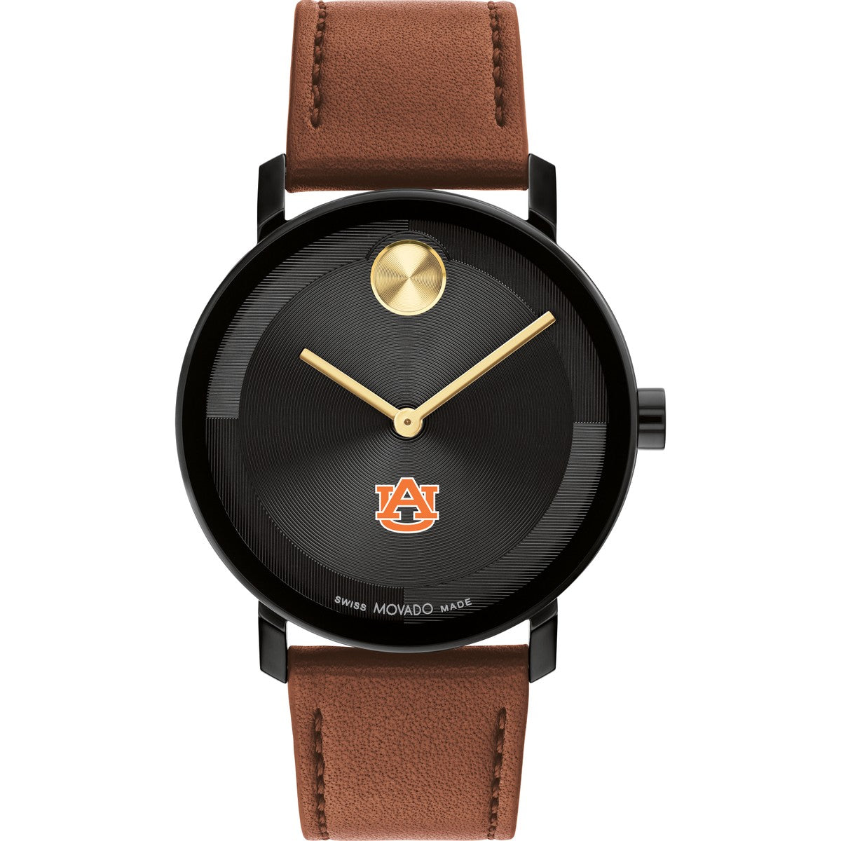 Embrace timeless sophistication with the Auburn University Men's Movado watch, featuring Auburn Logo on the dial. Crafted with a luxurious Cognac Nappa leather strap and a striking micro-textured black tonal dial with a glossy lacquer overlay. Complimentary personal engraving.