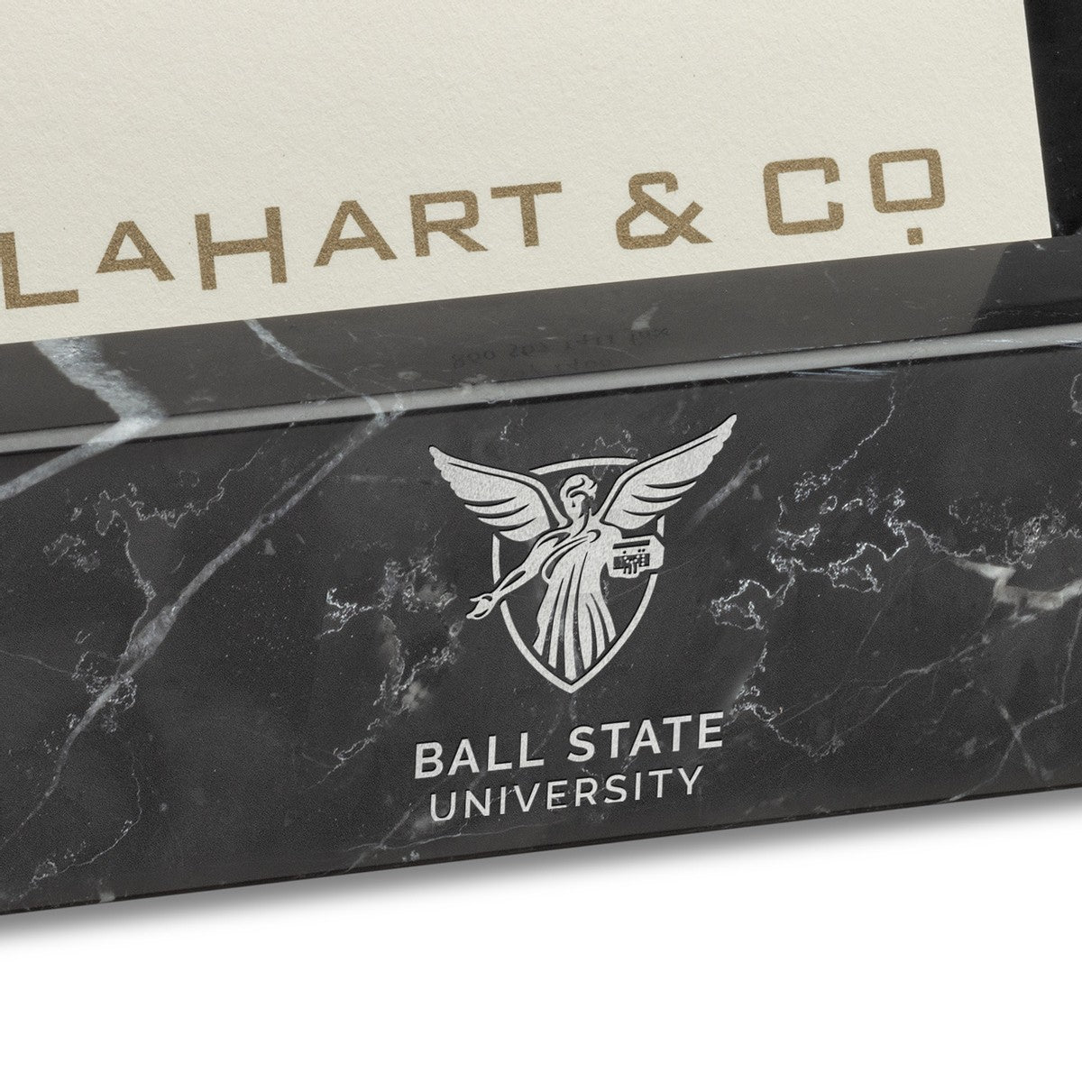 Perfect for new grads and seasoned professionals, the officially licensed Ball State University marble cardholder is an essential for the desk of Ball State fans. The Ball State logo is elegantly featured on the front of this substantial, solid marble card holder and accommodates all standard size business cards.