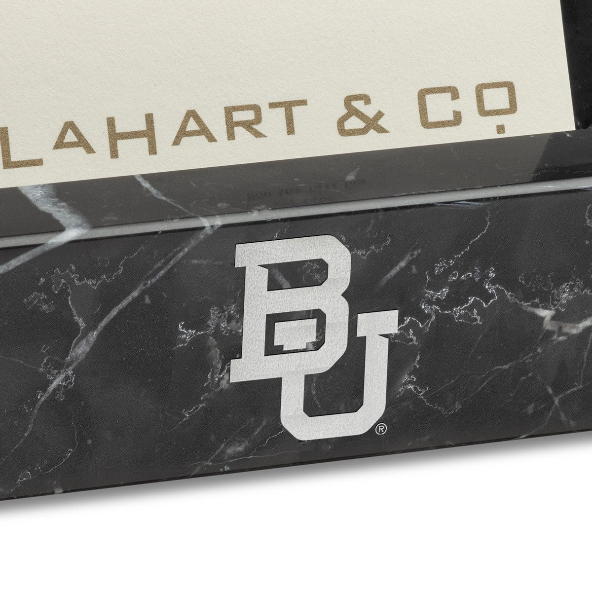 Perfect for new grads and seasoned professionals, the officially licensed Baylor University marble cardholder is an essential for the desk of Baylor fans. The Baylor Logo is elegantly featured on the front of this substantial, solid marble card holder and accommodates all standard size business cards.