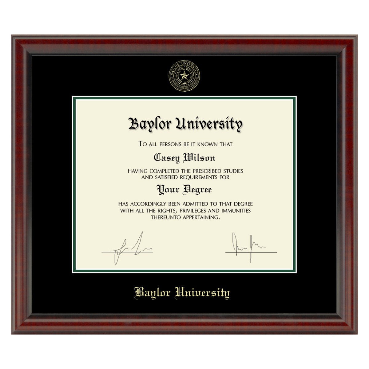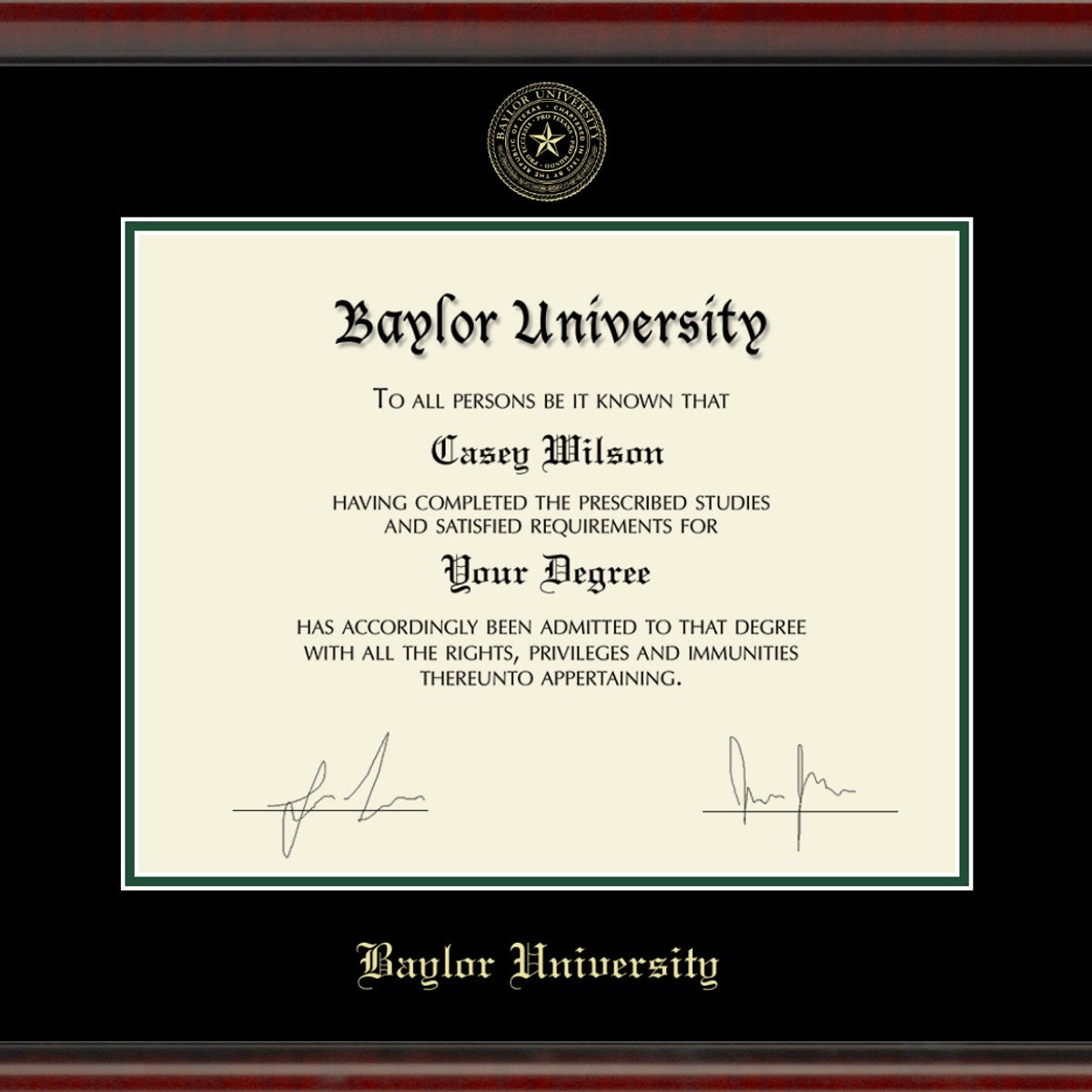 This Baylor University diploma frame is crafted from solid wood in the USA. Proudly display your Baylor diploma with museum quality conservation mounting materials to showcase and protect your Baylor University diploma.