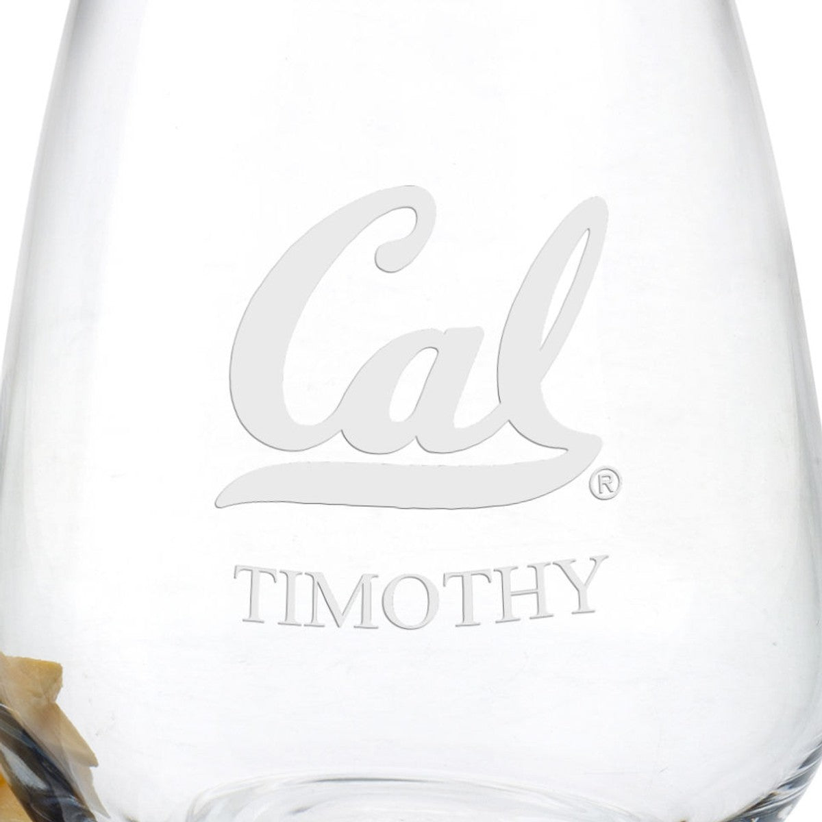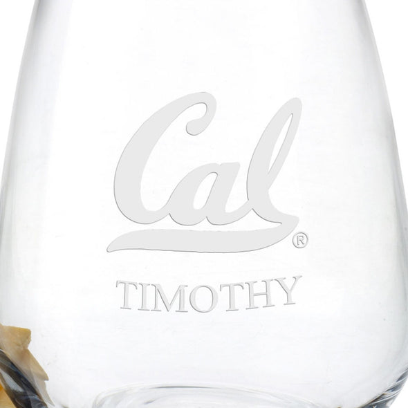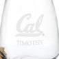Contemporary Berkeley stemless wine glasses bring an elegant touch to your table or bar. The Cal Logo is deep-etched on each glass.