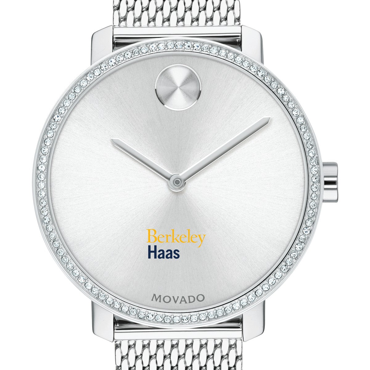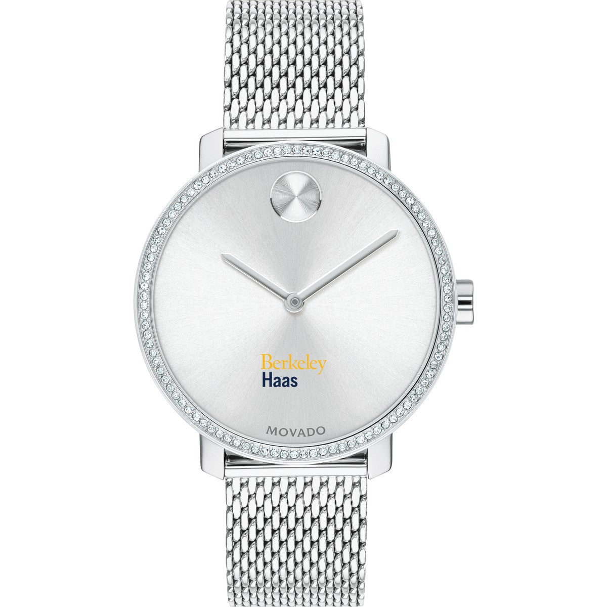 Haas School of Business Women's Movado BOLD watch features the Berkeley Haas logo in full color at 6 o'clock on silver sunray dial.