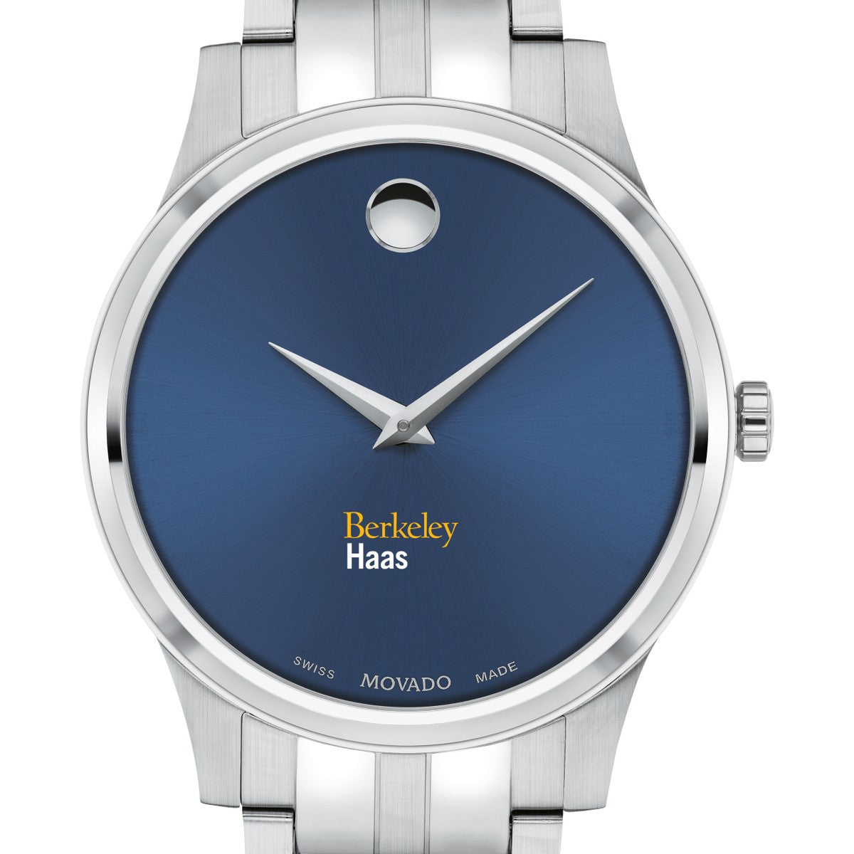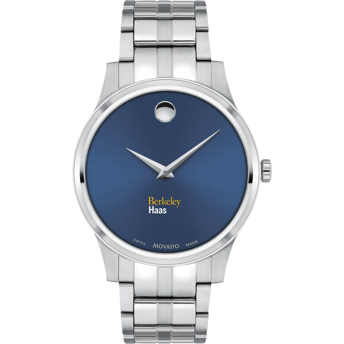 The Haas School of Business Men's Movado Collection watch boasts a striking blue dial featuring the iconic Berkeley Haas logo in full color. This timeless timepiece, renowned for its concave dot representing the sun at high noon, has been a symbol of elegance since its inception in 1947. Make it uniquely yours with free engraving without affecting order processing time.