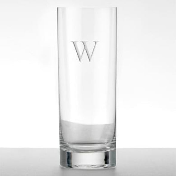 Iced beverage glasses have your custom initial distinctly etched on each glass. Generously proportioned 16-ounce glasses are a pleasure to hold.