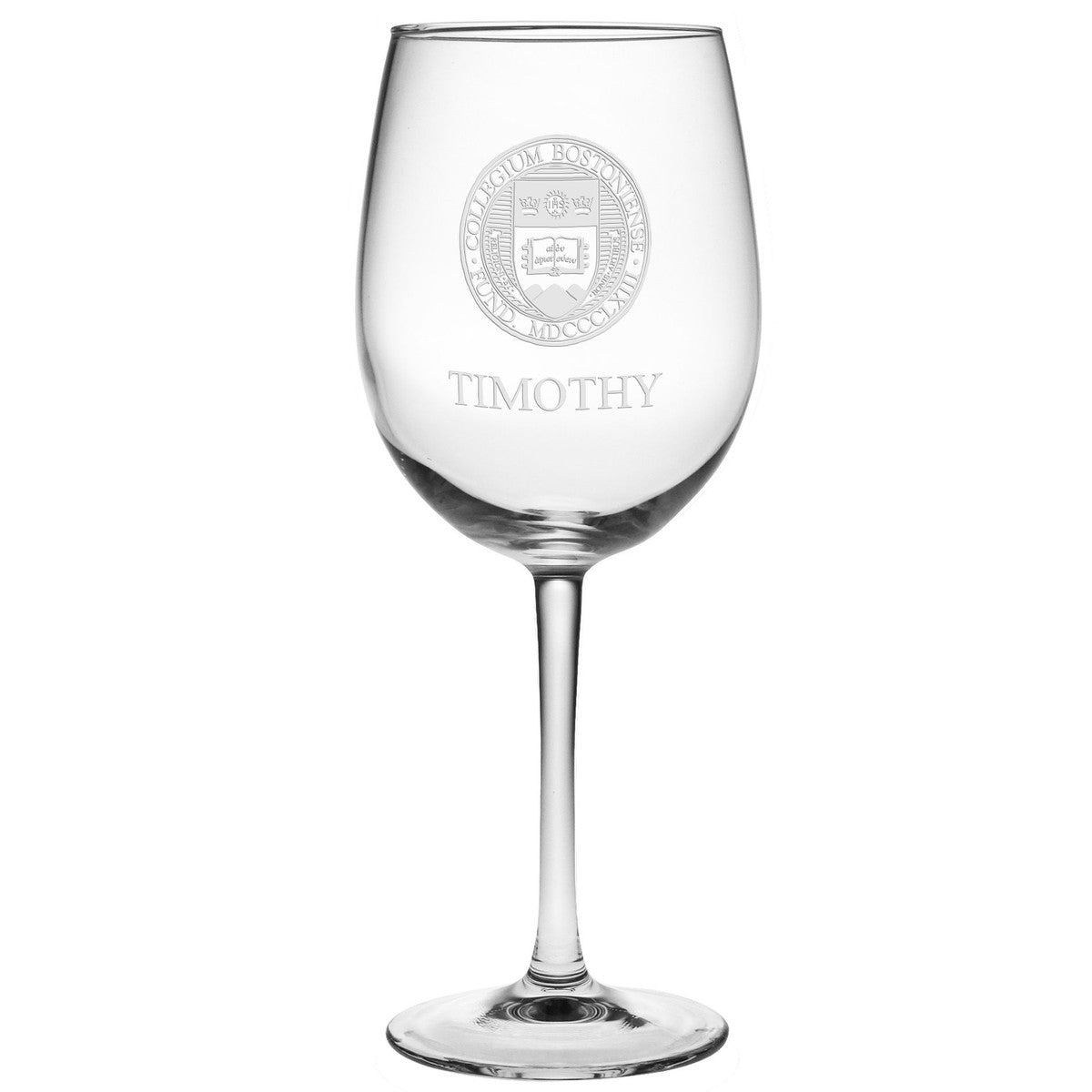 Fine Boston College wine glasses are an elegant touch for your table or bar. The Boston College Logo is laser etched on each glass.