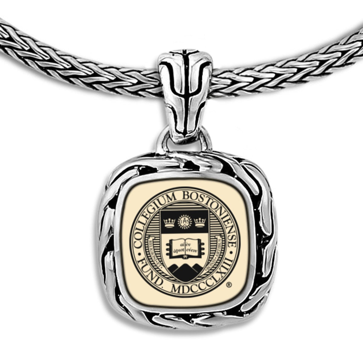 The sterling charm features an 18-karat gold center, intricately engraved with the Boston College Logo. The bracelet is handwoven from beautiful sterling silver strands, giving each piece authentic contours, movement and feel – and quintessential John Hardy style.