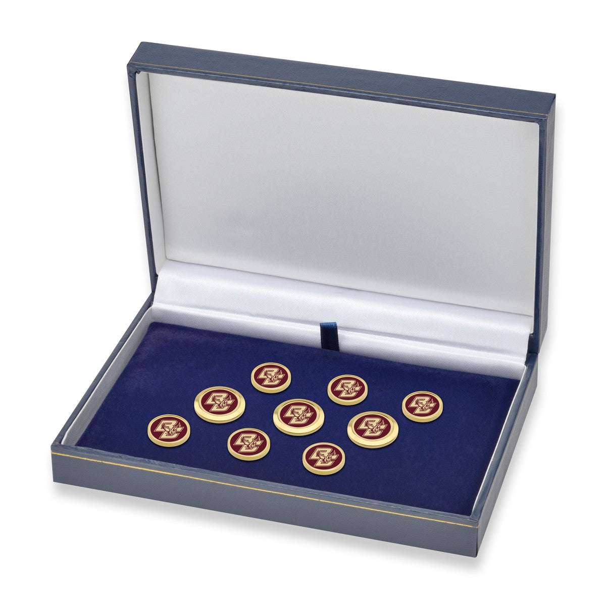 Add some Boston College polish to your blazer with these buttons. Designed in England with traditional enamel and gold finish. Blazer set includes 3 large buttons and 6 small buttons.