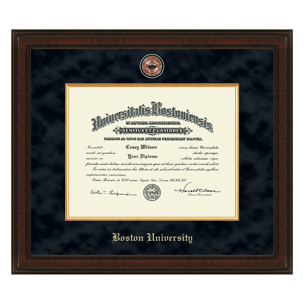 - Frame fits Boston University diploma measuring 11x14 H. Overall frame dimensions are 20.25x23.25