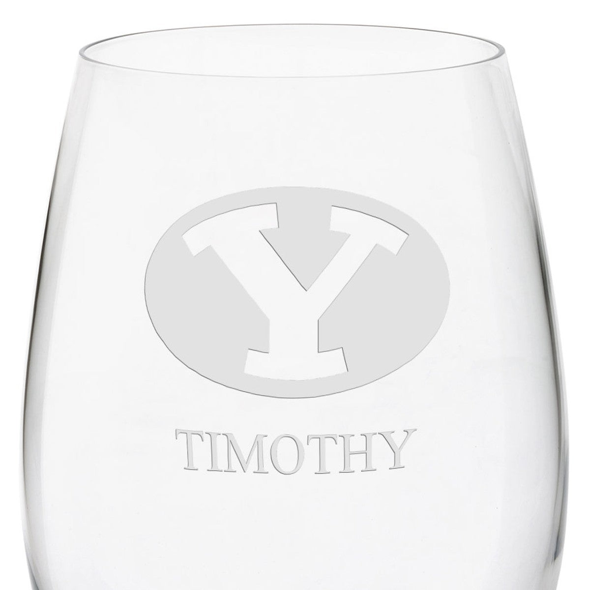 Fine Brigham Young University wine glasses are an elegant touch for your table or bar. The BYU logo is deep-etched on each glass.