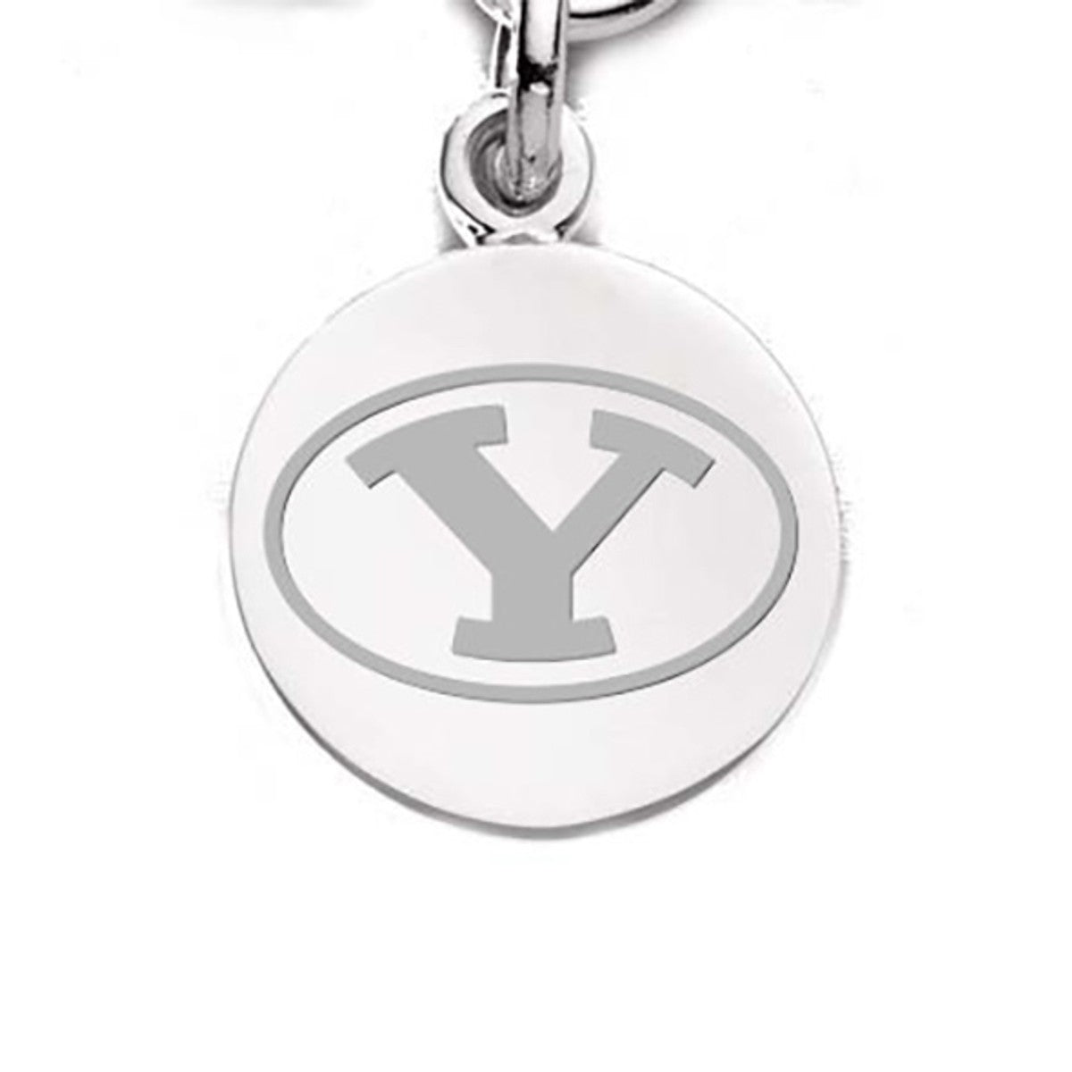 Brigham Young University sterling silver, finely detailed charm features BYU logo on front.