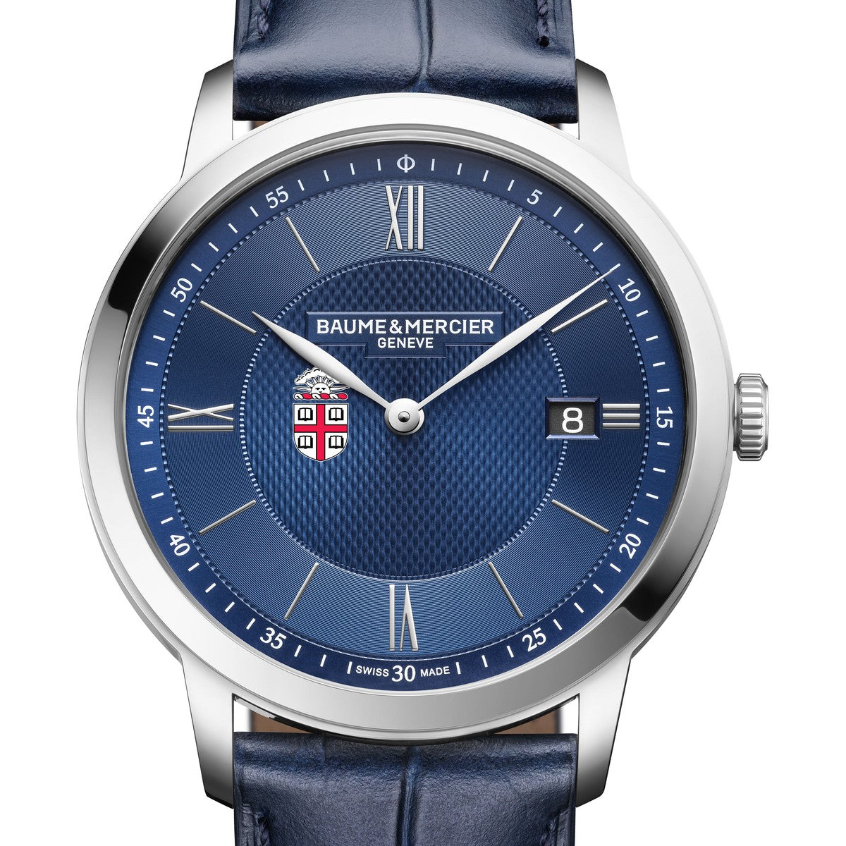 Clean and contemporary, the Brown Men's Baume & Mercier 40mm Classima Watch features a rich blue dial with the Brown logo, polished steel hands, and a classic leather strap. Finished with a reliable quartz movement, it’s a confident expression of tradition, pride, and timeless design. Complimentary personal engraving.