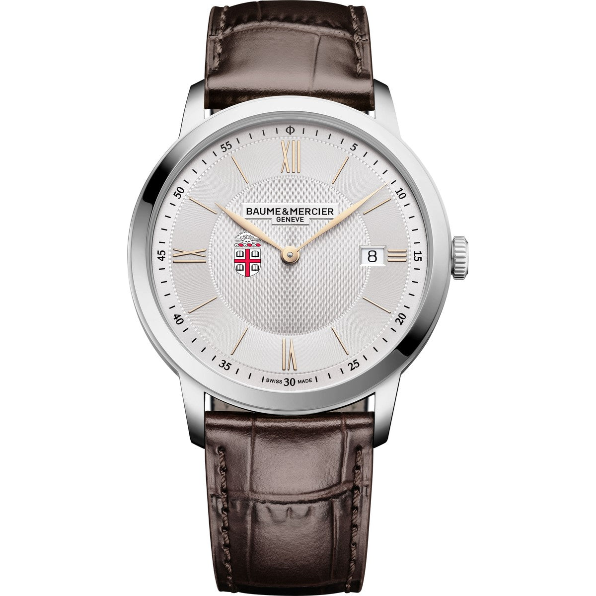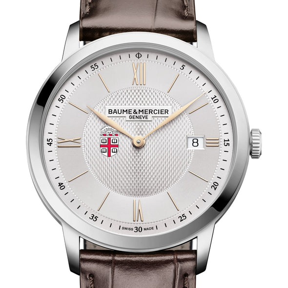 Classic and understated, the Brown Men's Baume & Mercier 40mm Classima Watch features a silver dial with the Brown logo, polished steel hands, and a traditional leather strap. Powered by a precision quartz movement, it’s a timeless expression of accomplishment and enduring style. Complimentary personal engraving.