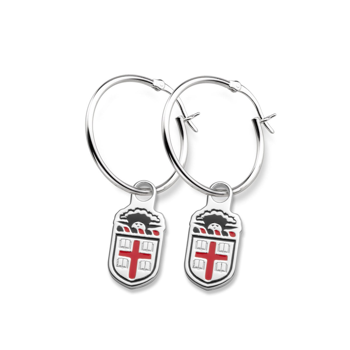 Our stylish Brown sterling silver earrings are the perfect compliment to any outfit. These earrings are sure to turn heads; each adorned with a sterling silver charm featuring the school logo in colored enamel.