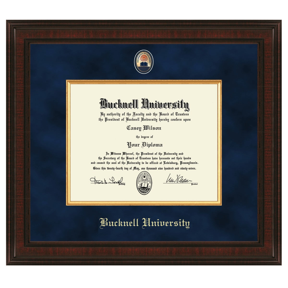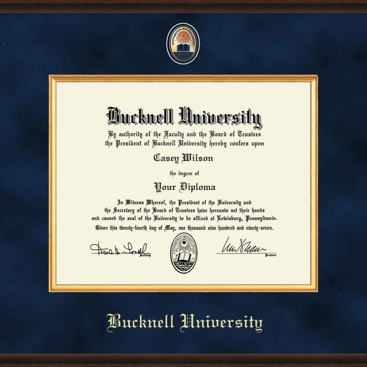 This Bucknell University diploma frame is specifically made to showcase and preserve your Bucknell University Diploma. Made from solid wood in the USA to meet stringent Library of Congress standards for archival document preservation.