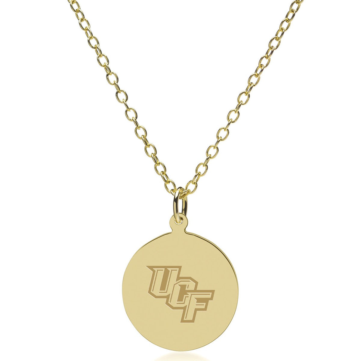 This solid 18-karat gold pendant and chain is an instant heirloom, featuring the UCF Logo beautifully engraved on the front with room for personalization on the back.