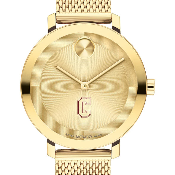 The College of Charleston Women's BOLD Movado features the prestigious Charleston logo. Its pale gold Ionic-plated stainless steel mesh bracelet exudes contemporary elegance, making it a timeless accessory for the modern woman.