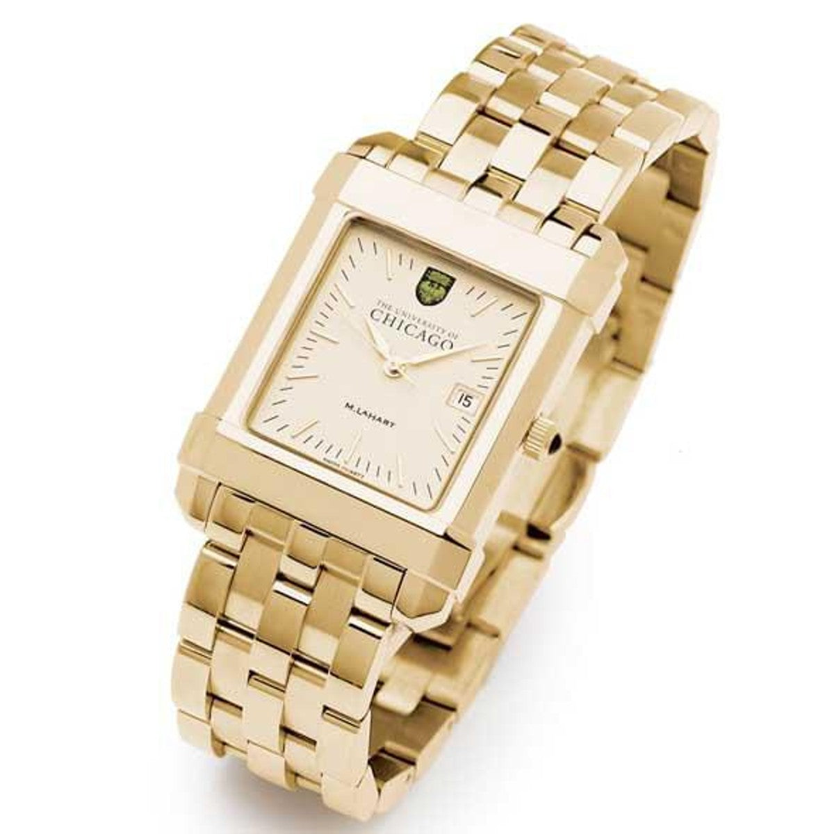 University of Chicago men's gold watch featuring the Chicago Logo on cream dial. Free Engraving on all watches.