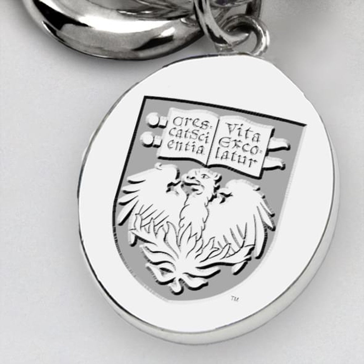 University of Chicago sterling silver, finely detailed charm features Chicago seal on front.