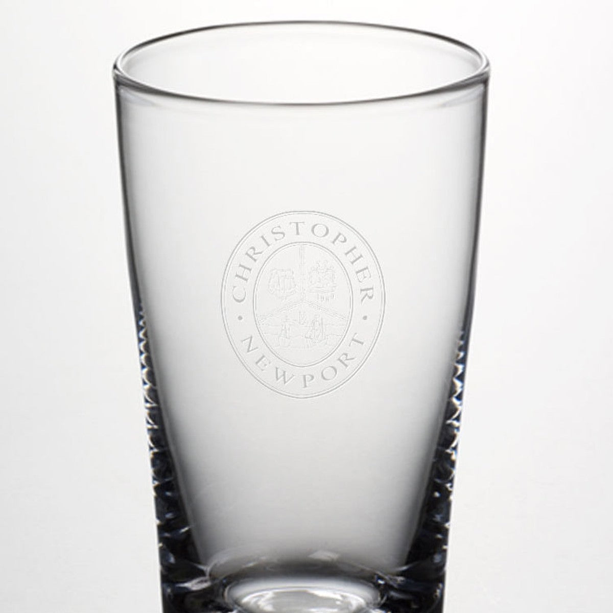 CNU Pint Glass features the CNU Logo handsomely engraved on the hand-blown glass. From its narrowly flared lip to its sleek, cylindrical body and sturdy, solid base, this pint glass is a classic.