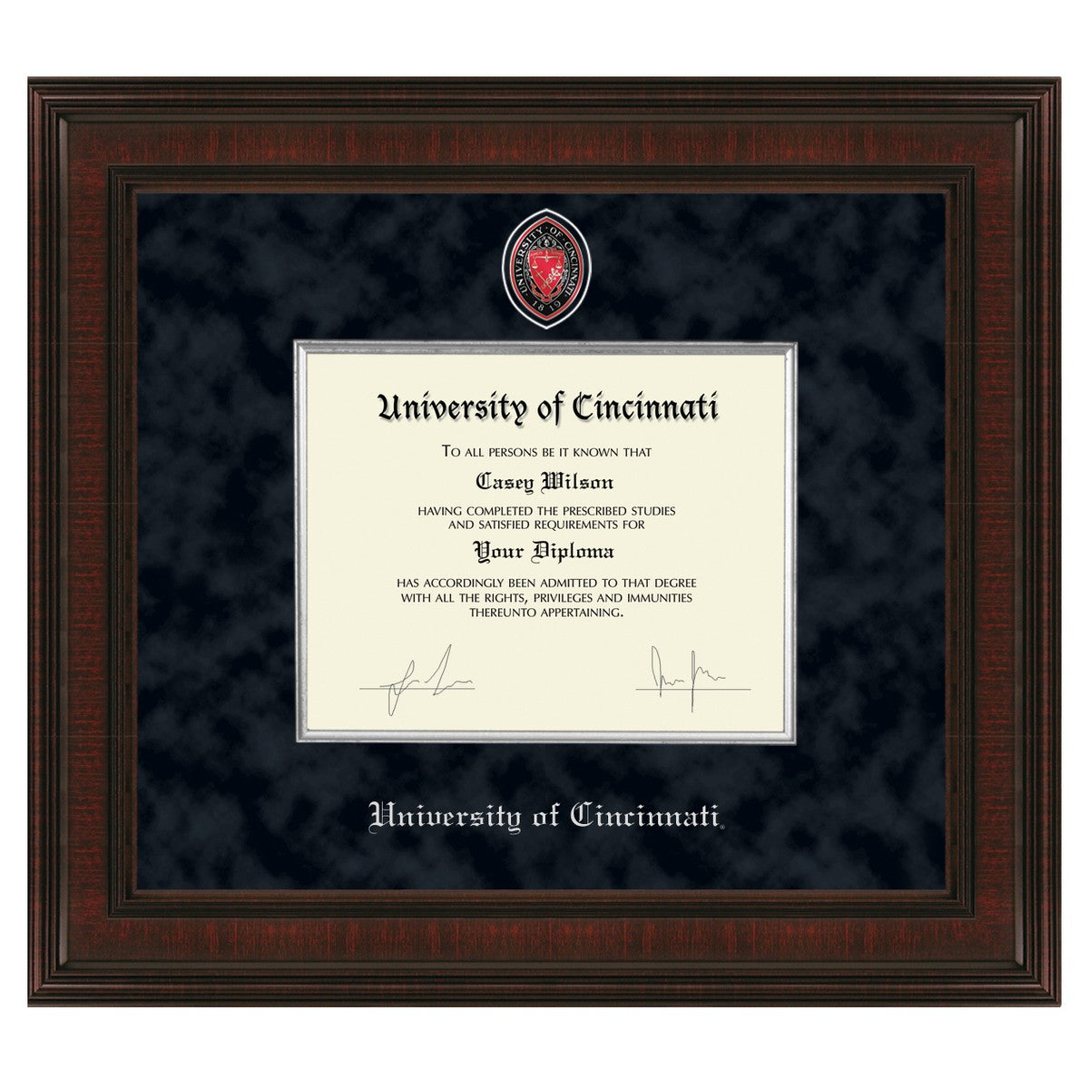This University of Cincinnati diploma frame is specifically made to showcase and preserve your University of Cincinnati Diploma. Made from solid wood in the USA to meet stringent Library of Congress standards for archival document preservation.